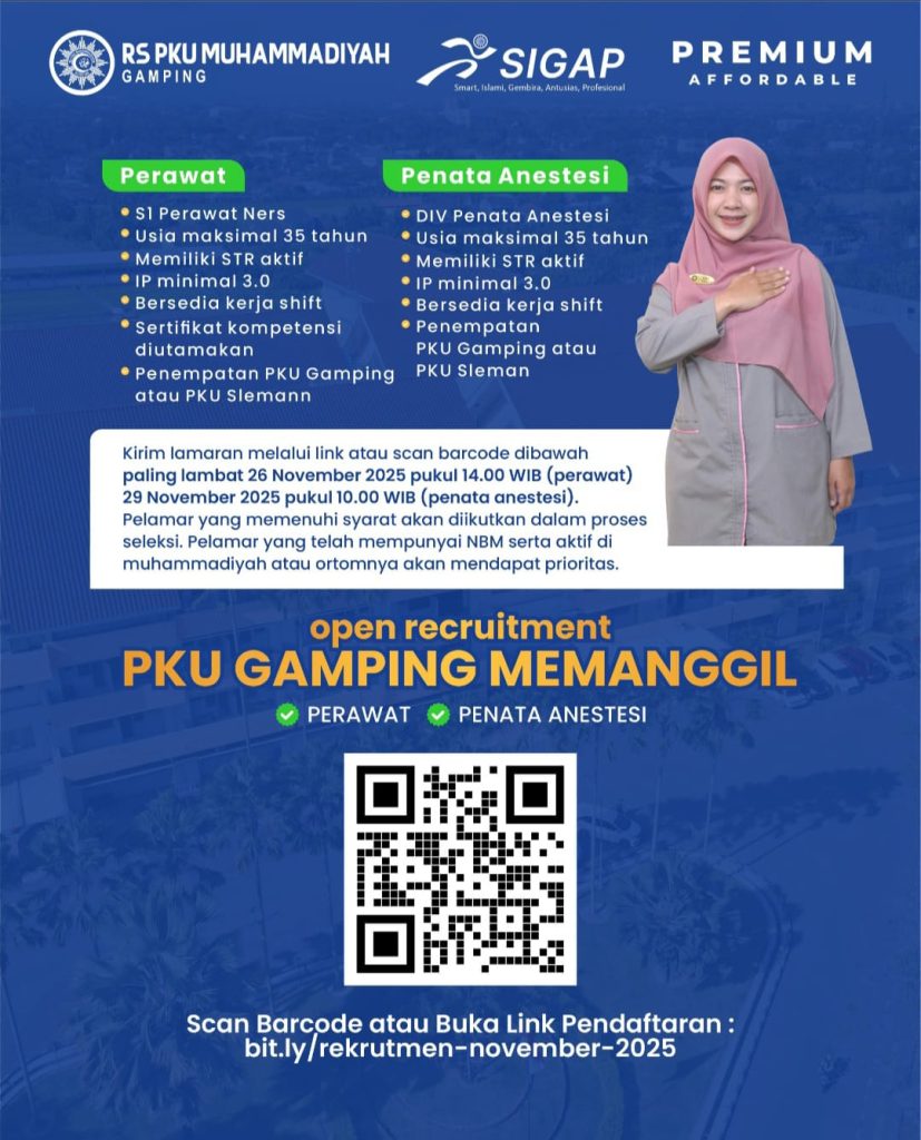 Usia maksimal 35 tahun,IPK minimal 3,0STR Aktif , bersedia bekerja shitf . Pelamar yang mempunyai NBM diutamakan.