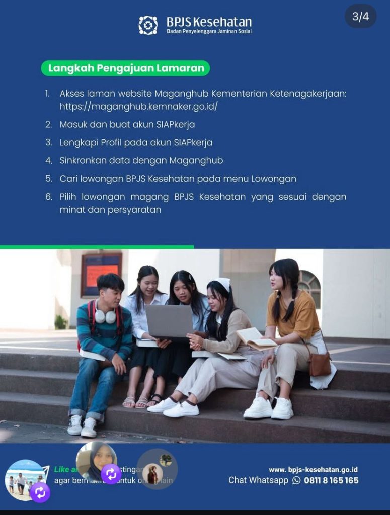 Persyaratan : masuk dan buat akun SIAPkerja, singkronkan data dengan Maganghub, cari lowongan BPJS KEsehatan pada menu lowongan