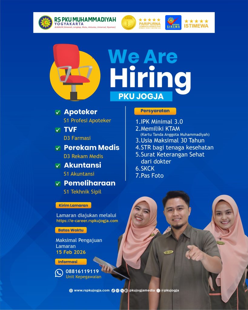 Lamaran diajukan melalui = https://e-career.rspkujogja.com maksimal 15 Februari 2026